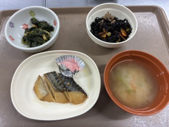 さばのみりん焼き、ひじきの五目煮、