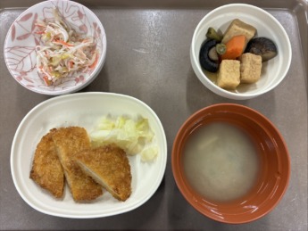 とんかつ、厚揚げの煮物、