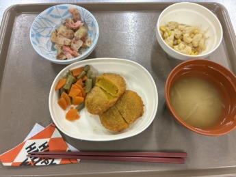 皆さん、こんにちは!! 本日も、とある日の献立について紹介します♫ かぼちゃコロッケ、カリフラワーの炒め物、 キャベツと竹輪の梅おかか和え、味噌汁です😊 この日はHAPPY HALLOWEENǴ…
