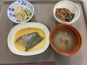 皆さん、こんにちは!! 本日も、とある日の献立について紹介します♫ さばの照り焼き、里芋のそぼろ煮、 ほうれん草の辛子和え、味噌汁です😊 本日の献立は、さくら膳スタッフからも 大絶賛!!人気メニューになっ…
