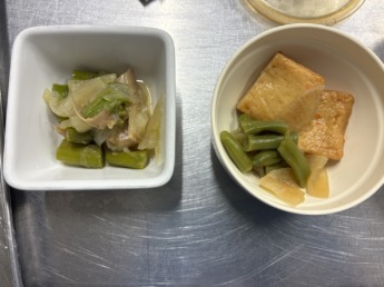 皆さん、こんにちは!! 本日も、とある日の献立について紹介します♫ 今回も番外編として・・・ 角天と野菜の煮物、アスパラとエリンギの和え物です😊 こちらも朝食メニューになります🐔 アスパラ…