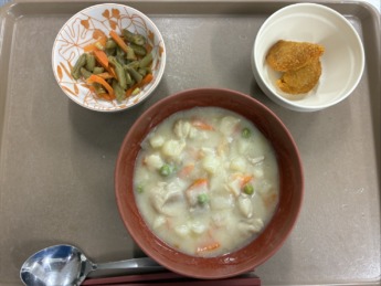 皆さん、こんにちは!! 本日も、とある日の献立について紹介します♫ クリームシチュー、かぼちゃコロッケ、 いんげんのサラダです😊 こんな寒い日はあったかシチューが恋しくなりますね⛄♡ 今後と…