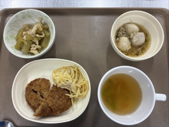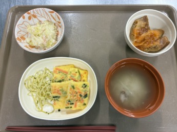 皆さん、こんにちは!! 本日も、とある日の献立について紹介します♫ すき焼きコロッケ、里芋のそぼろあんかけ、 ふきの信田和え、野菜スープです😊 すき焼きコロッケは甘辛く、中の人も 大好きなメニューの一つで…