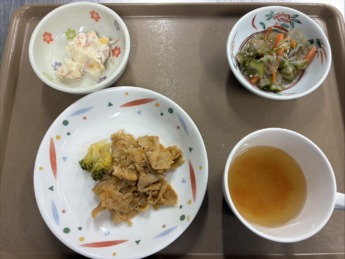 皆さん、こんにちは!! 本日も、とある日の献立について紹介します♫ 鶏肉のくわ焼き、切干大根の生姜煮、 チンゲン菜ともやしの和え物、味噌汁です😊 切干大根は食物繊維やカルシウムが豊富です🥛…