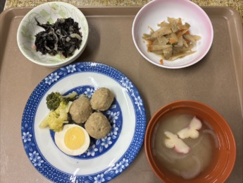 皆さん、こんにちは!! 本日も、とある日の献立について紹介します♫ 肉団子の甘辛煮、きんぴらごぼう、 ひじきと玉葱のサラダ、味噌汁です😊 肉団子の甘辛煮はゆで卵と一緒に 美味しく召し上がりください°˖✧◝…