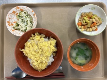 皆さん、こんにちは!! 本日も、とある日の献立について紹介します♫ 親子丼、きのこソテー、 菜の花のピーナッツ和え、すまし汁です😊 さくら膳特製の親子丼は、 やさしく飽きない味つけで幅広い世代に好まれる、…
