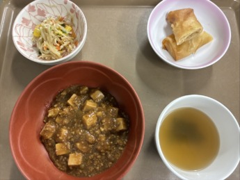 皆さん、こんにちは!! 本日も、とある日の献立について紹介します♫ 麻婆豆腐、春巻、 もやしの五目和え、中華スープです😊 中華の日ですね°˖✧◝(⁰▿⁰)◜✧˖° さくら膳の麻婆豆腐は何回も試作を重ね、 …